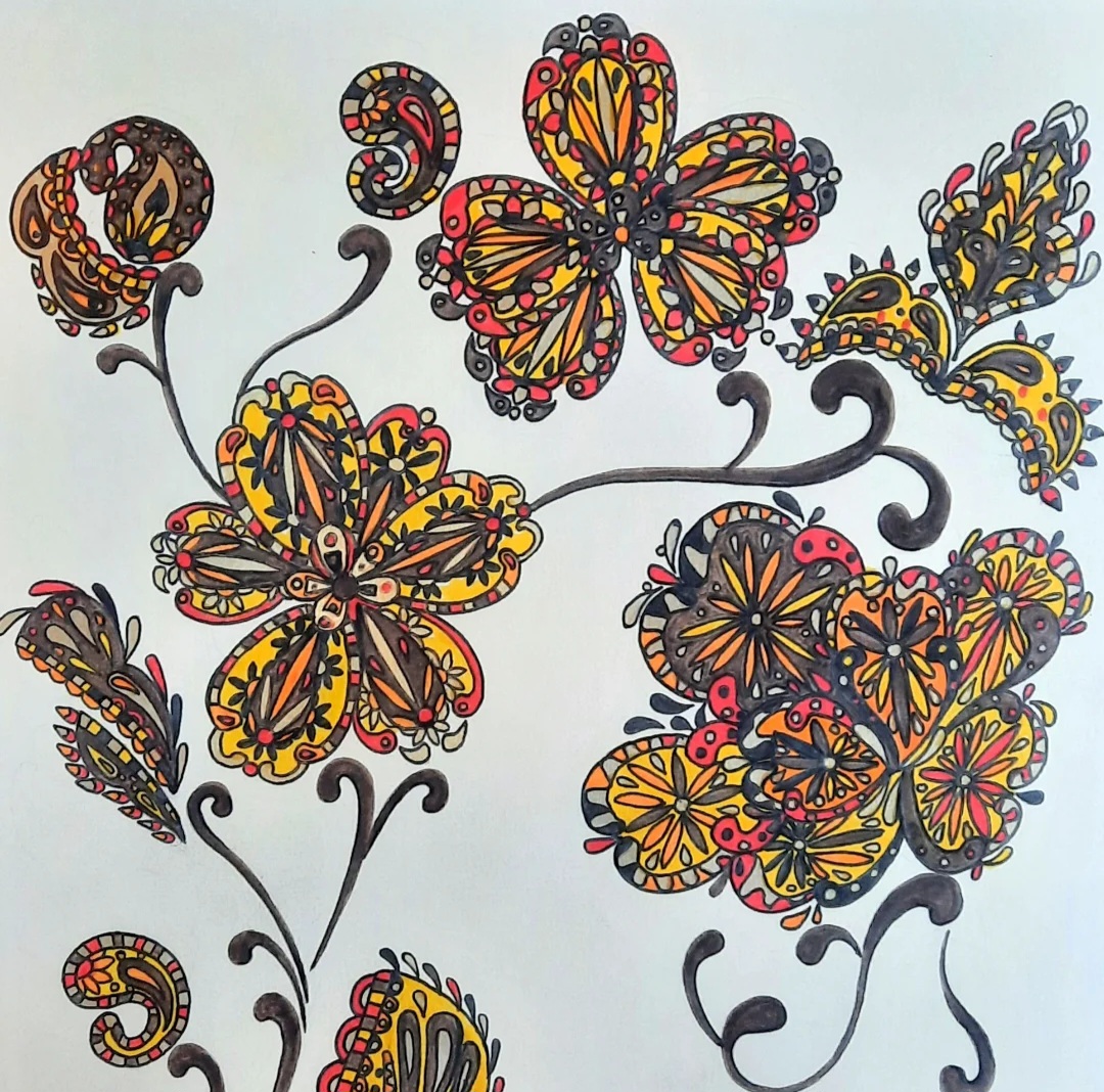 Composition mixte ( feutre, encre) unique environ 40cmx30cm.