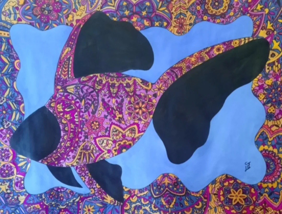 Composition mixte (acrylique, feutre, encre) unique environ 40cmx30cm.