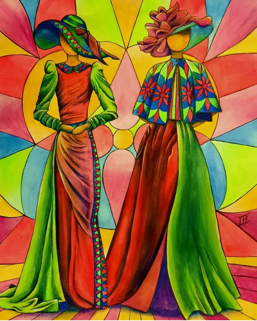 Tableau aquarelle « mannequins avec chapeau et petit châle »