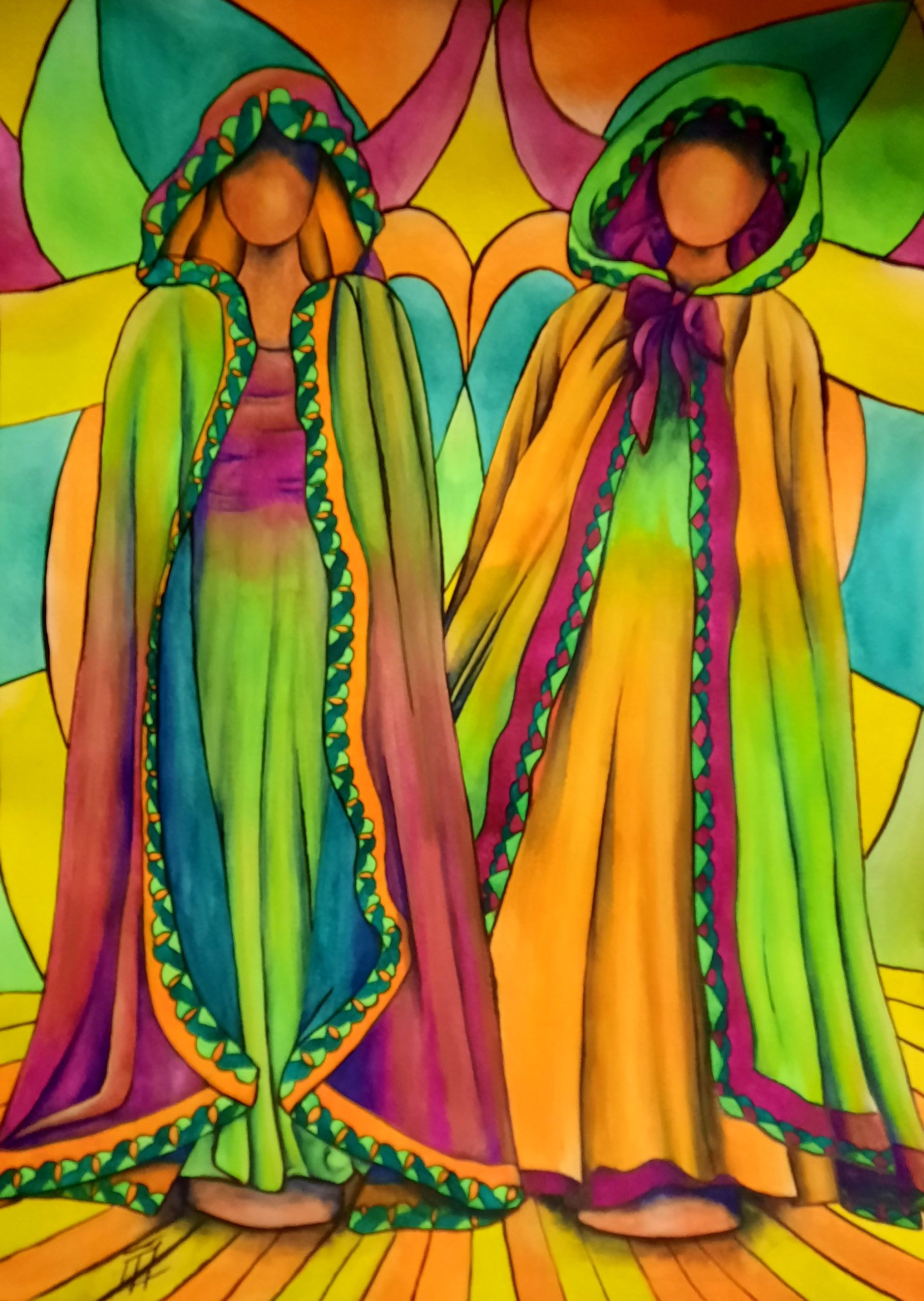 Tableau en aquarelle, « mannequins en capes »